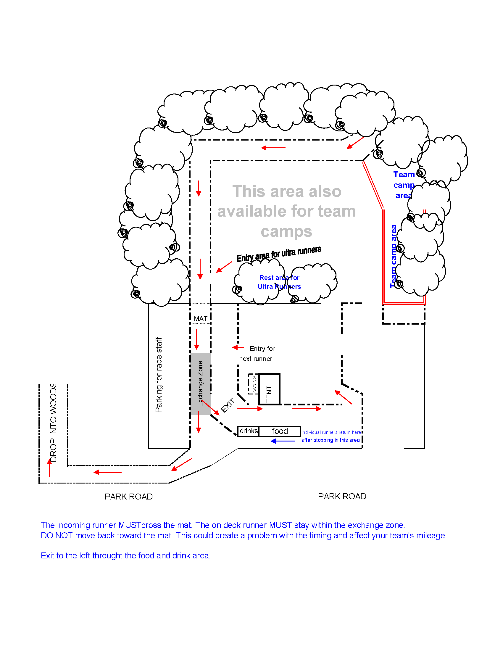 Start/Finish, Runner’s Village & Exchange Zone